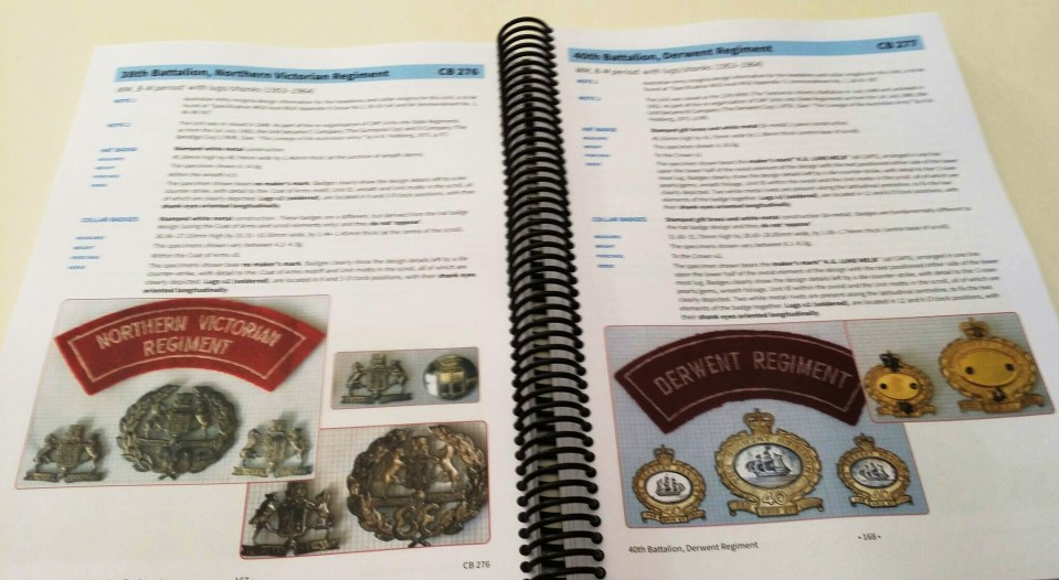 The Proofs of Volume 2 of our Australian Army insignia reference work became available today. The book will be launched at the Militaria Fair in Brisbane on the weekend of 15/16 July. For now, here’s a bit of a pre-view of what the long awaited ‘beasty’ looks like.