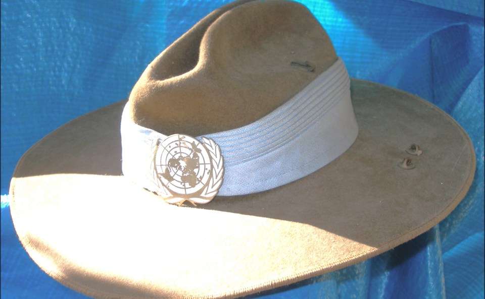 The purpose of this post, is to cover new material on UN Deployment insignia, as a suppliment to the existing material within the hard copy and the pdf versions of Volume 1. Both hard copy and downloadable versions of that work, set out images of (metal) ‘Other ‘Ranks’ badges for wear on the UN’s ‘Beret Blu’ and on other forms of uniform headdress… including the ADF’s Khaki Fur Felt ( the ‘KFF’, or ‘slouch hat’).